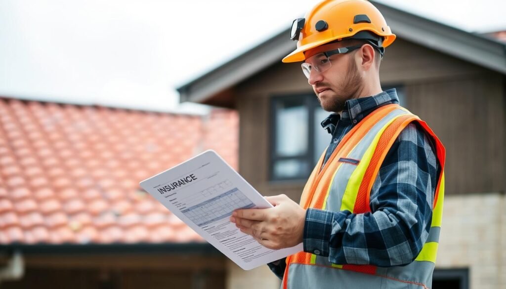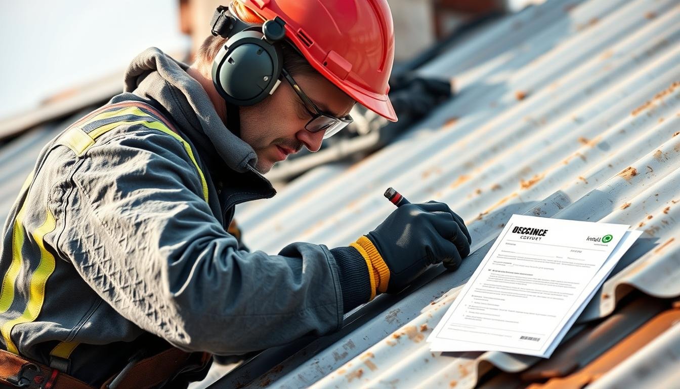 Zingueur consultant la documentation de son assurance décennale sur un chantier
