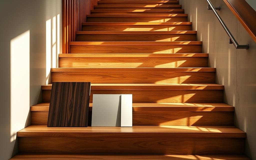 Le bois naturel apporte élégance et chaleur. Il existe en vrai ou en imitation, offrant durabilité et facilité d’entretien. Ces options sont parfaites pour les escaliers poussiéreux.