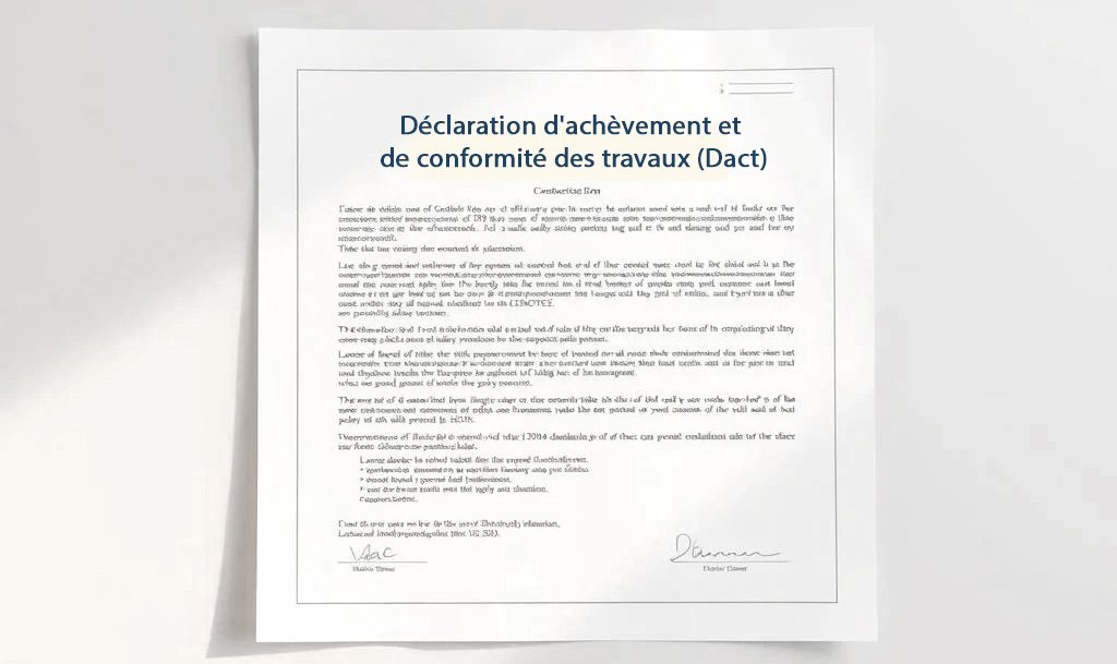 La Déclaration d’achèvement et de conformité des travaux (DACT) est très importante. Elle est nécessaire pour les constructions et rénovations. Elle assure que tout est conforme aux règles de construction.